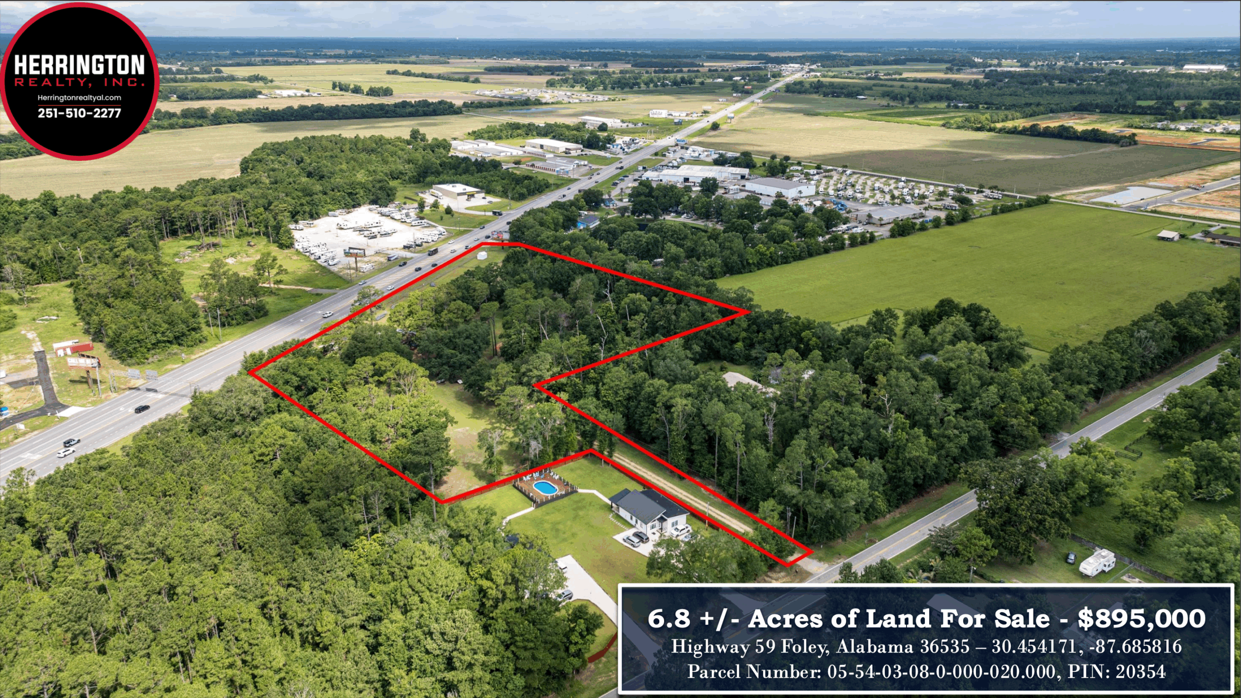 NEW LISTING: 6.8 +/- Acres of Land For Sale – Foley, Alabama (Frontage on Highway 59)
