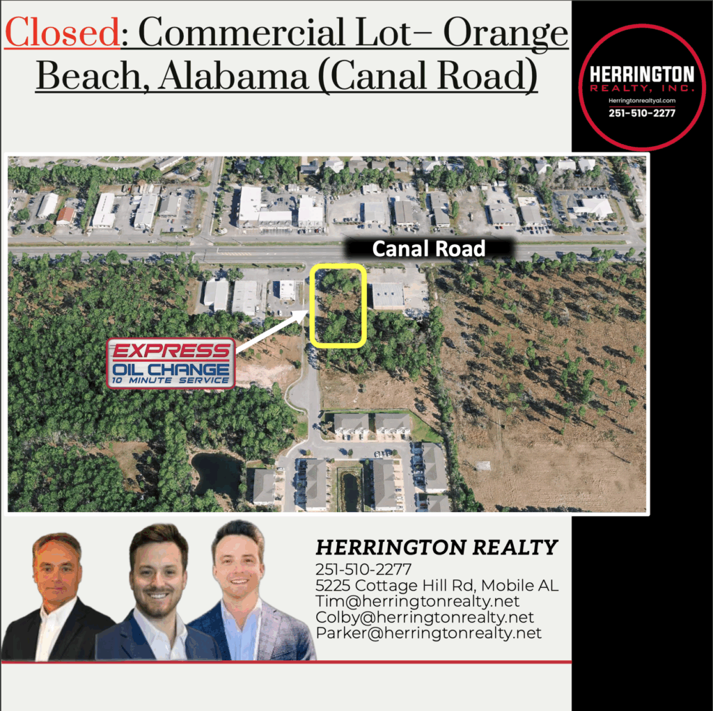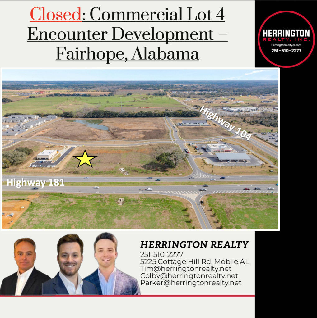 Herrington Realty was pleased to have represented the seller in the transaction on commercial lot 4 at Encounter Development at Highway 181/104 which will bring foosackly's to the Fairhope community. This deal was done in collaboration with Vallas Realty, Inc., who we always enjoy working with.We have additional commercial lots still available at this development, reach out for more...