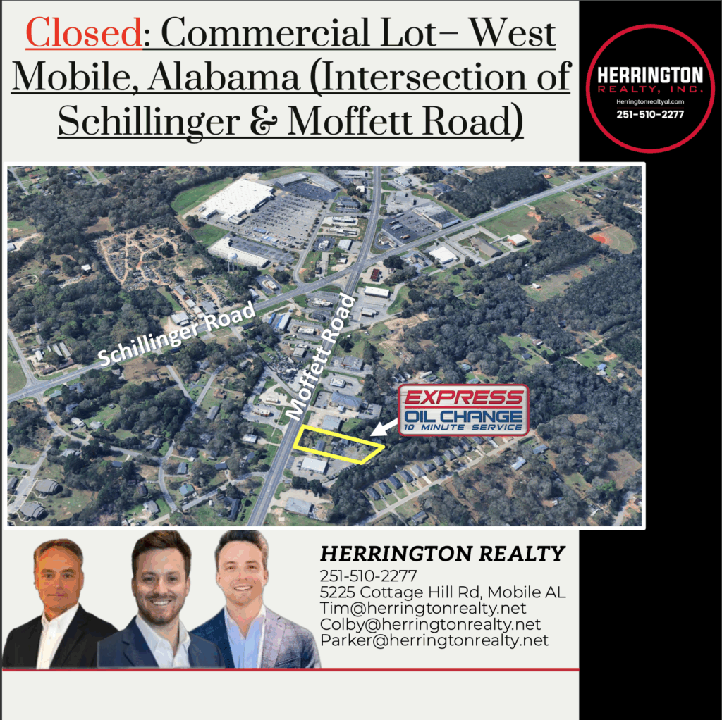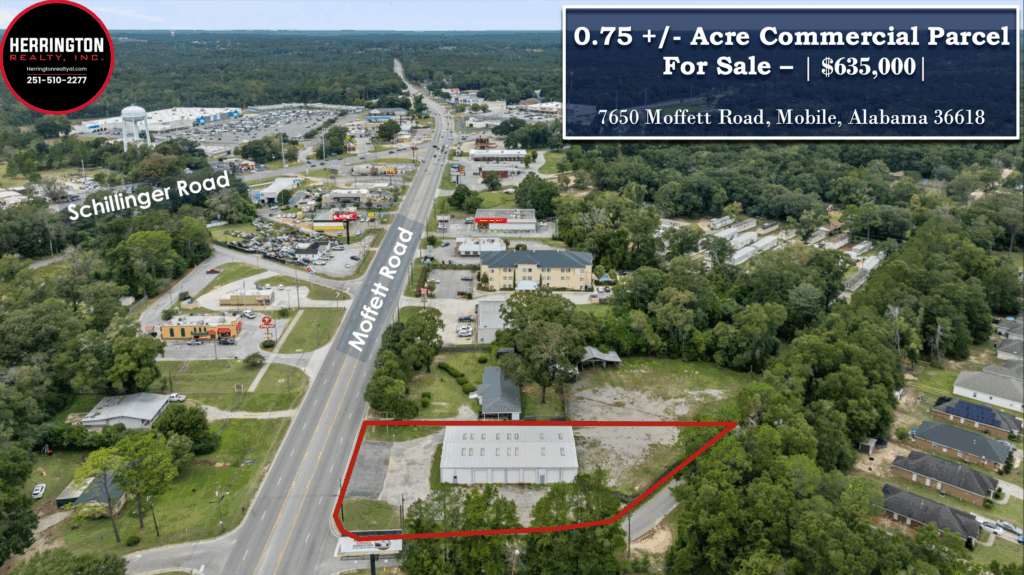Herrington Realty is pleased to present an exclusive opportunity to purchase approximately 0.75 +/- acres of land in West Mobile, Alabama. This property offers direct frontage on Moffett Road, which sees over 26,300+ vehicles per day, providing excellent visibility and access for future commercial development. The site is surrounded by national retailers and QSRs including – Walmart Supercenter,...